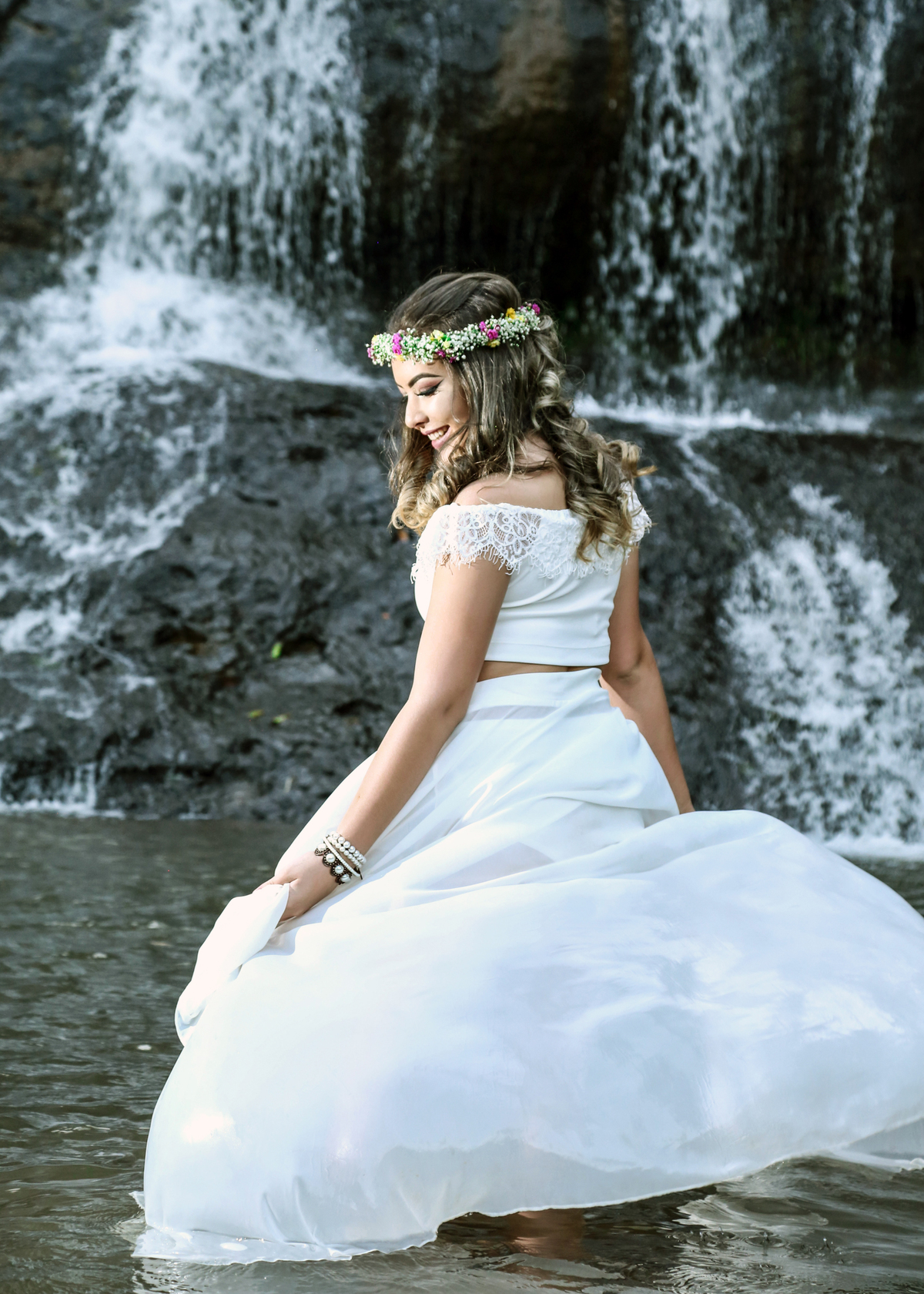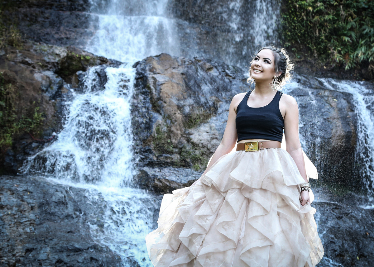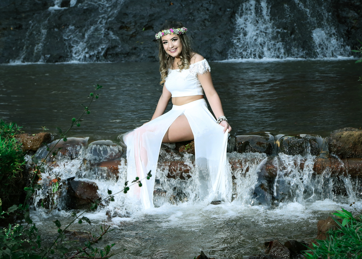 No segundo dia ela já estava mais a vontade , e como a sessão foi próximo a cachoeira tiramos várias fotos descontraídas e ela até dentro da água ela foi parar, foi um dia muito divertido cheio de sorrisos e é claro belas fotos dessa modelo.